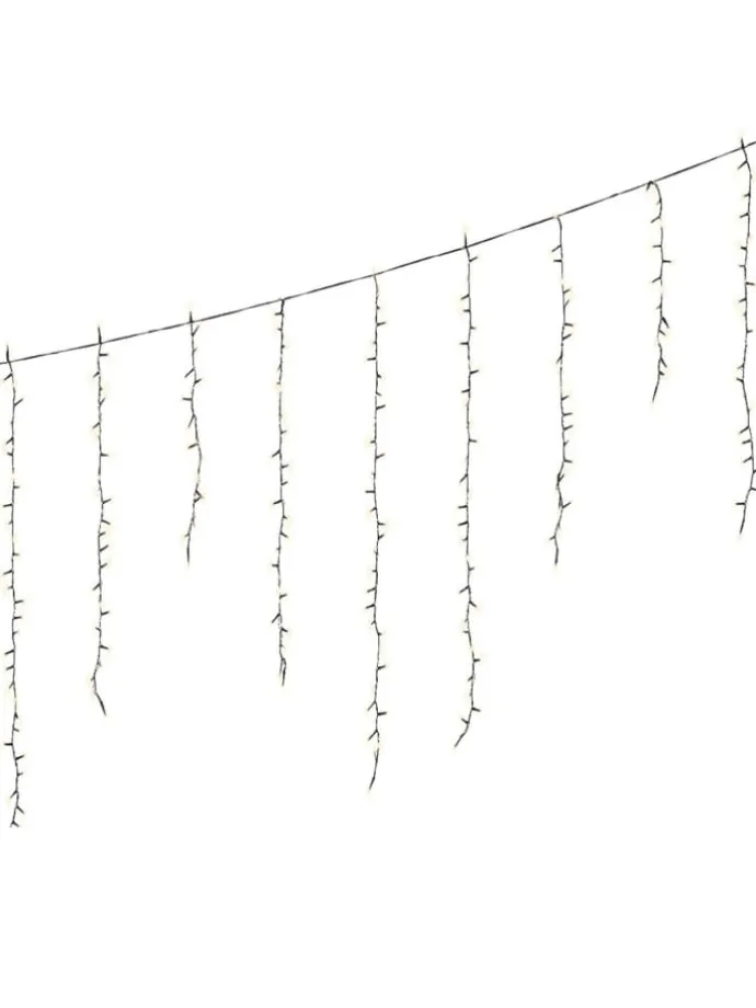 Dieser Lichtervorhang aus 16 Strängen in 3 unterschiedlichen Längen, ist die perfekte Weihnachtsbeleuchtungen für Deinen Garten, Balkon oder die Terrasse. Der Lichtervorhang Eisregeneignet sich hervorragend für Treppengeländer, Fassaden, Dachrinne oder Hecke. An 16 schwarzen Strängen funkeln insgesamt 256 warmweiße LED. Bei etwas Wind bewegt sich der Lichtervorhang dann und glitzert.
