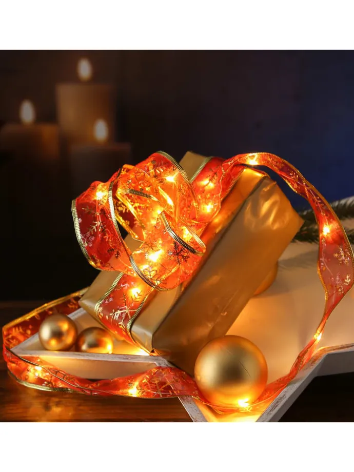 Art: Seidenbank/Geschenkband mit Drahtlichterkette mit Schneeflockenmotiv