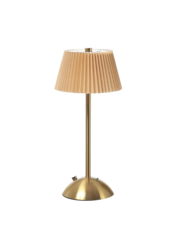 Hol dir stilvolles Licht in dein Zuhause! Das dekorative LED Tischlämpchen GENUA ist perfekt für deinen Esstisch, Nachttisch oder deine Kommode. Mit seinem goldfarbenen Metallfuß und dem braunen Schirm setzt es elegante Akzente und sorgt gleichzeitig für die richtige Beleuchtung.