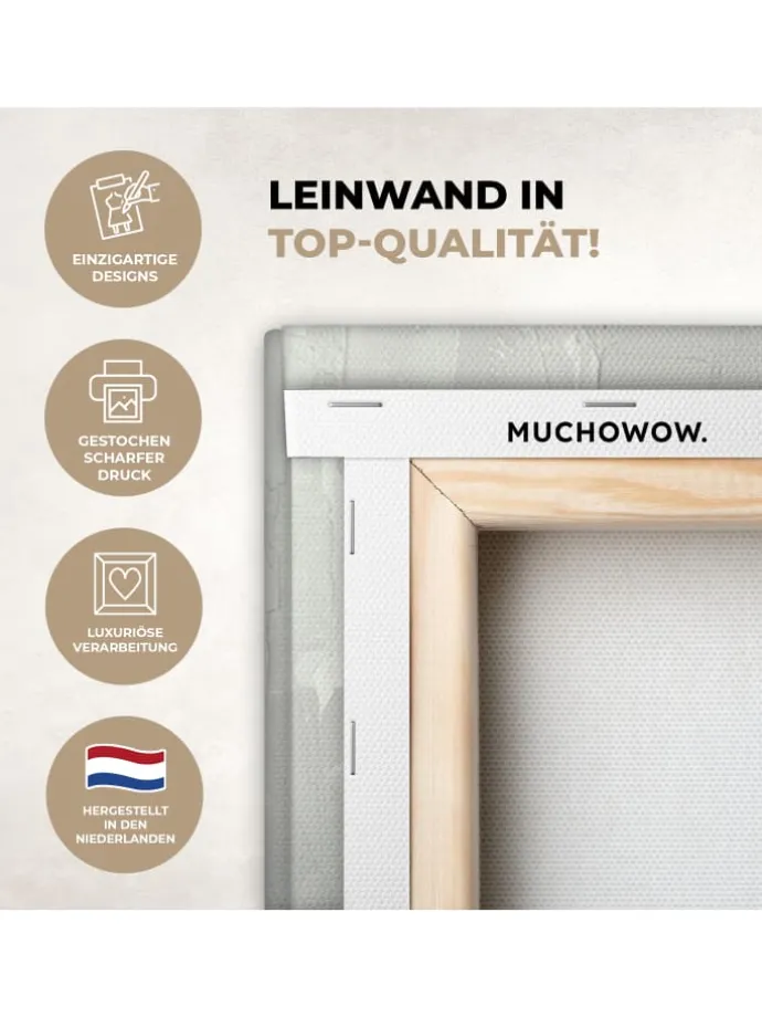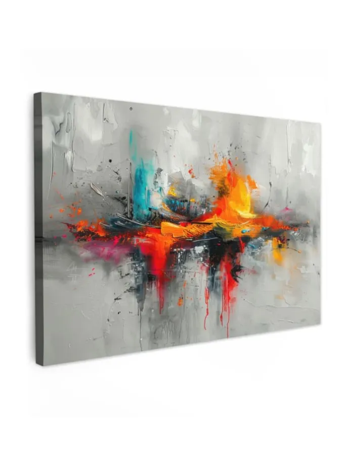 Dieses wunderschöne Gemälde wird in höchster Auflösung auf Leinwand gedruckt. Dies garantiert einen gestochen scharfen, farbechten Druck mit leuchtenden Farben. Die Seiten der Leinwand sind mit einem Beschnitt des Fotos bedruckt. Dadurch passen auch diese Seiten der Leinwand gut zum Foto. Das Foto wird auf robustes, 260 Gramm schweres, 0,41 mm dickes Leinwandgewebe gedruckt. Das Leinengewebe ist straff auf einen zwei Zentimeter dicken Holzkeilrahmen gespannt. Dieser Holzrahmen besteht aus FSC-zertifiziertem Kiefernholz. Das Produkt wird mit einem Standard-Aufhängesystem geliefert, mit dem sich der Druck einfach an der Wand befestigen lässt. Produkteigenschaften In verschiedenen Größen erhältlich Inklusive praktischem Aufhängesystem Auf einen 2 cm dicken Holzrahmen gespannt Wanddekoration, geeignet für Ihr: Schlafzimmer, Wohnzimmer, Kinderzimmer, Büro, Flur, Küche und jeden anderen Raum in Ihrem Zuhause oder Ihren Geschäftsräumen Umfangreiche SammlungMuchoWow verfügt über eine umfangreiche Sammlung wunderschöner Bilder zu verschiedenen Themen.Über das Foto: Ein modernes abstraktes Kunstwerk mit kräftigen orangefarbenen Akzenten auf grauem Hintergrund.