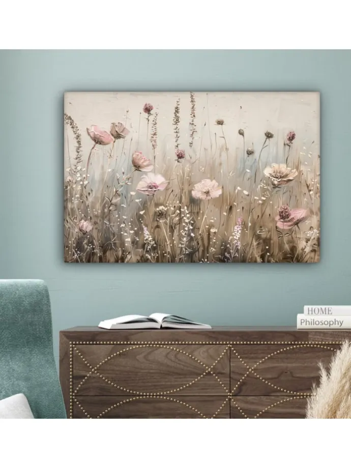 Dieses wunderschöne Gemälde wird in höchster Auflösung auf Leinwand gedruckt. Dies garantiert einen gestochen scharfen, farbechten Druck mit leuchtenden Farben. Die Seiten der Leinwand sind mit einem Beschnitt des Fotos bedruckt. Dadurch passen auch diese Seiten der Leinwand gut zum Foto. Das Foto wird auf robustes, 260 Gramm schweres, 0,41 mm dickes Leinwandgewebe gedruckt. Das Leinengewebe ist straff auf einen zwei Zentimeter dicken Holzkeilrahmen gespannt. Dieser Holzrahmen besteht aus FSC-zertifiziertem Kiefernholz. Das Produkt wird mit einem Standard-Aufhängesystem geliefert, mit dem sich der Druck einfach an der Wand befestigen lässt. Produkteigenschaften In verschiedenen Größen erhältlich Inklusive praktischem Aufhängesystem Auf einen 2 cm dicken Holzrahmen gespannt Wanddekoration passend für Ihr: Schlafzimmer, Wohnzimmer, Kinderzimmer, Büro, Flur, Küche und jeden anderen Raum in Ihrem Zuhause oder Ihren Geschäftsräumen Umfangreiche SammlungMuchoWow verfügt über eine umfangreiche Sammlung wunderschöner Bilder zu verschiedenen Themen.Über das Foto: Rosa Blumen auf beigem Hintergrund.
