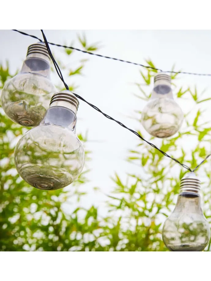 Die Lichterkette SUNLIGHT Solar von BUTLERS, eine unverzichtbare Hartware im Bereich Lampen & Leuchten, speziell Lichterketten & Deko-Leuchten, verwandelt Ihren Außenbereich in eine stimmungsvolle Oase. Mit dieser Solarlichterkette aus robustem ABS und Polypropylen bringst du ganz einfach und kabellos ein warmes Licht in deinen Garten, auf deine Terrasse oder deinen Balkon. Die Gesamtlänge von 380 cm mit einem beleuchteten Bereich von 180 cm und einer Zuleitung von 200 cm ermöglicht flexible Dekorationsmöglichkeiten. Dank der 10 transparenten Glühbirnen schafft die Lichterkette SUNLIGHT Solar eine einzigartige Atmosphäre, die zum Verweilen einlädt. Ob als Dekoration für draußen, zur Beleuchtung eines Gartentisches, Regals, Sideboards, Busches oder Baumes – diese solarbetriebene Lichterkette ist die ideale Lösung. Sie ist perfekt für alle, die Wert auf einfache Handhabung und eine schöne Optik legen. Die Lichterkette SUNLIGHT Solar ist nicht nur ein Highlight für den Garten, sondern auch für den Balkon, die Terrasse, den Außenbereich, das Wohnzimmer oder sogar den Partykeller. Ihre kabellose Funktionalität und die Nutzung der Solarenergie machen sie besonders umweltfreundlich und wartungsarm. Du kannst sie vielseitig einsetzen und damit jeden Anlass oder einfach nur den Abend unter freiem Himmel verschönern. Entdecke die Leichtigkeit und Schönheit der Lichterkette SUNLIGHT Solar, ein Produkt der Marke BUTLERS, das dein Zuhause in ein warmes Licht taucht.