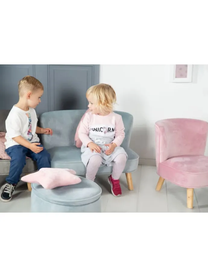 Lil Sofa‘ Kindercouch, bequem, Holzfüße & Samtstoff Sky/Hellblau