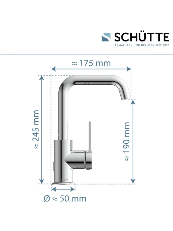 Im Lieferumfang enthalten ist ein vollständiges Montageset und eine mehrsprachige, bebilderte Montageanleitung. Die korrosionsbeständigen Anschlussschläuche (400 mm) an das Hauswassersystem sind flexibel und leicht zu montieren.