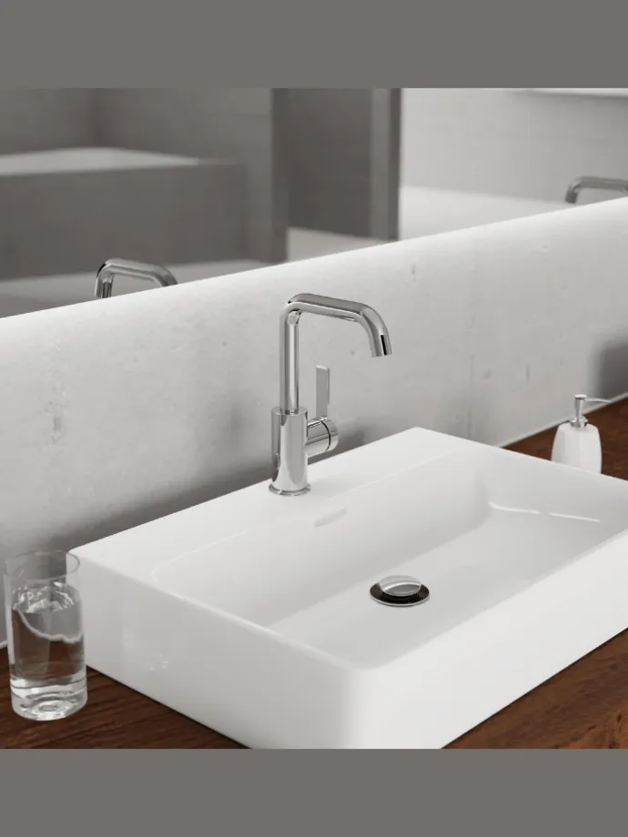 Mit dem 360° schwenkbarem Auslauf kann die Waschbeckenarmatur komfortabel gedreht werden und erleichtert z.B. das Säubern des Waschbeckens oder sorgt für mehr Platz. Einfach schnell mal zur Seite drehen.
