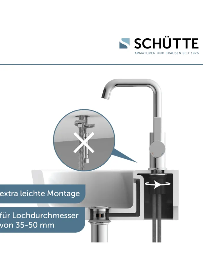 Abgerundet wird die Badarmatur durch ihre einfache Montage. Die mitgelieferte Zentralverschraubung ist praktisch, selbsterklärend und kann ohne Fachkenntnisse schnell umgesetzt werden.