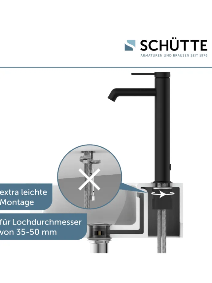 Abgerundet wird die Badarmatur durch ihre einfache Montage. Die mitgelieferte Zentralverschraubung ist praktisch, selbsterklärend und kann ohne Fachkenntnisse schnell umgesetzt werden.