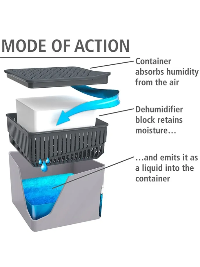 – reduziert die Luftfeuchtigkeit und schützt vor Schimmel und unangenehmen Gerüchen