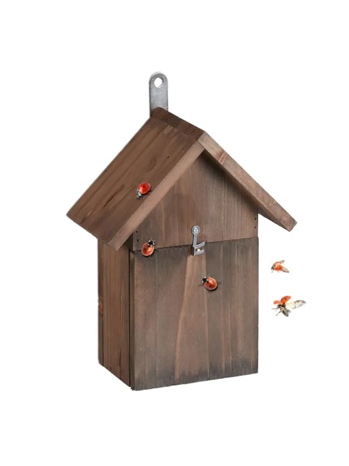 Mit dem Marienkäfer Unterschlupf trägst Du aktiv zum Artenschutz bei. Den gepunkteten Insekten dient das Marienkäferhaus als sicherer Unterschlupf oder Überwinterungshilfe. Hänge das Insektenhaus im Garten oder auf dem Balkon auf, um das faszinierende Treiben der Glückskäfer zu beobachten. Über die praktische Klappe kann das Haus einfach mit Nistmaterial befüllt werden. Dabei kannst Du auch von dem Hunger der Marienkäfer auf Blattläuse profitieren, der als natürliche Schädlingsbekämpfung dient.