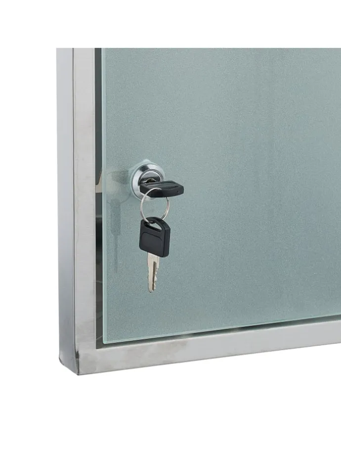 – Moderner Apothekenschrank aus Edelstahl und Tür aus Milchglas