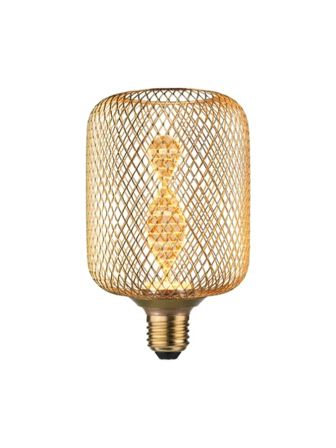 Das LED Leuchtmittel Metallic Glow verbindet dezentes, goldenes Licht mit einem dekorativen, messingfarbenen Metallkorb. Durch die Kombination aus einem lasergravierten Innenkolben und einer feinen Gitterstruktur, eignen sich die Leuchtmittel perfekt für Pendel- oder Tischleuchten mit E27 Fassung. Das leuchtende Element am Ende des Innenkolbens strahlt perfekt gerichtetes Licht nach unten. Zeitloses Design trifft hier auf effiziente LED-Technik und sorgt für gemütliche und goldene Akzentbeleuchtung.