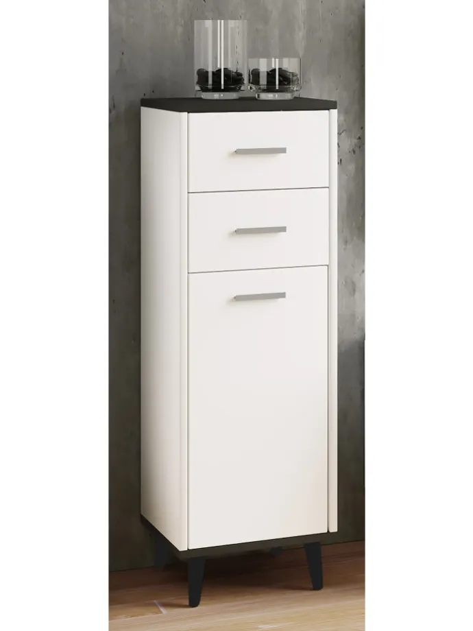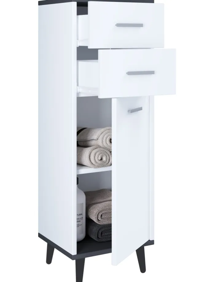 – Badmöbel mit zwei Schubladen und einer Drehtür für das Badezimmer