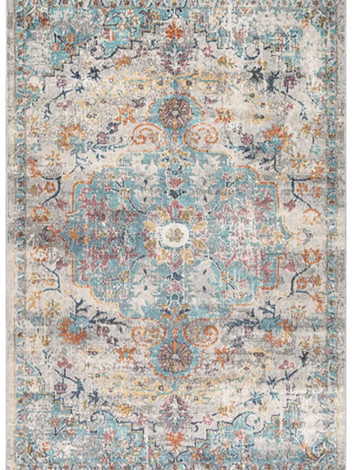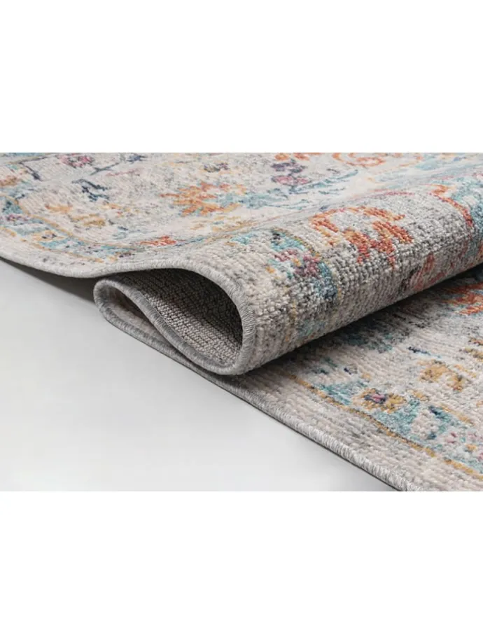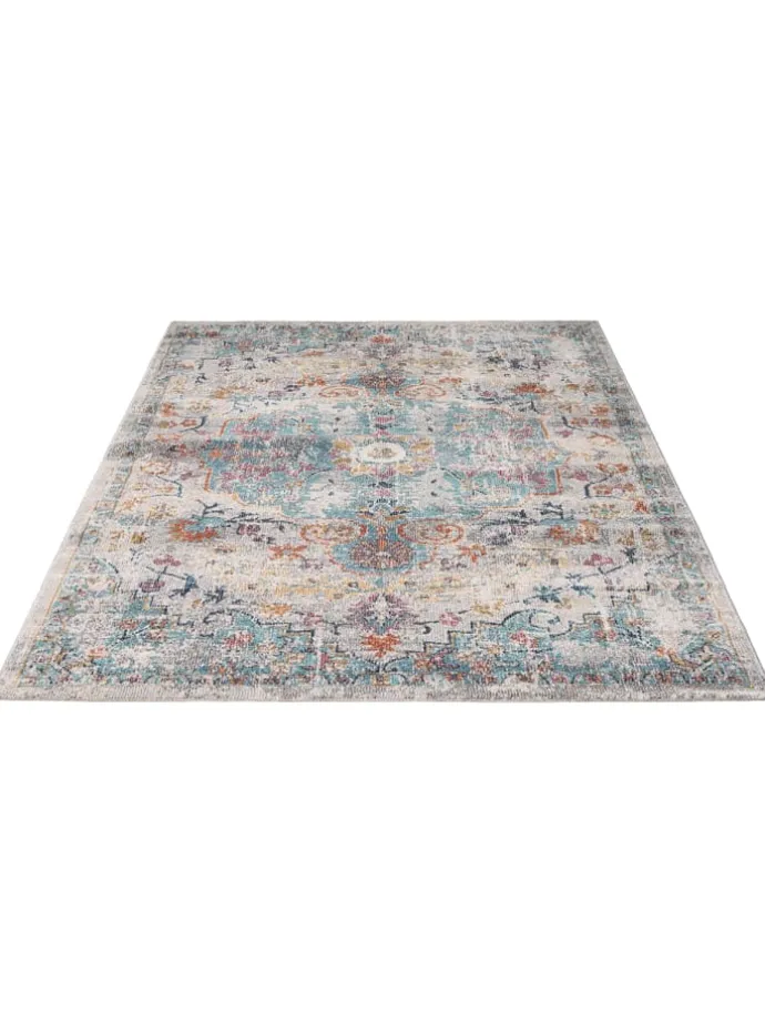 DESIGN: Ob orientalisch, abstrakt oder mit geometrischem Muster, dieser Teppich überzeugt mit seinen tollen Farben (Grundfarbe: Creme – Akzente: Türkis, Rosa, Grün, Orange, Gelb)