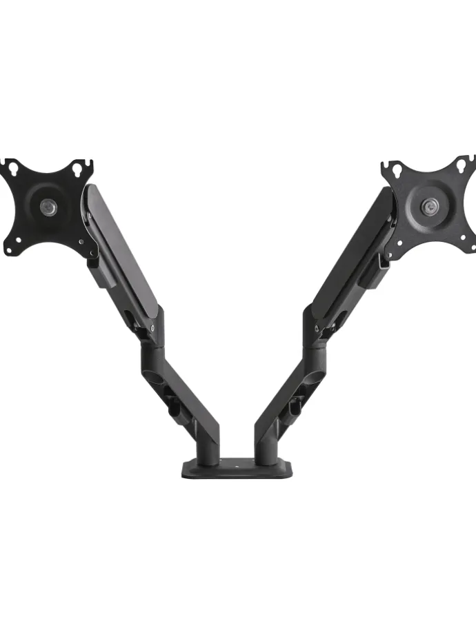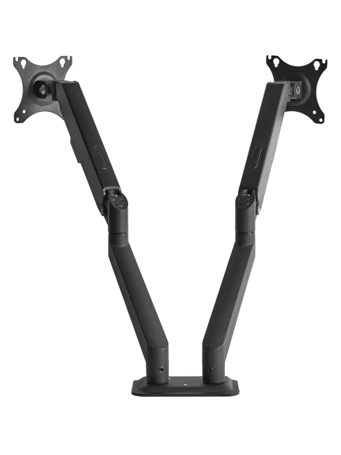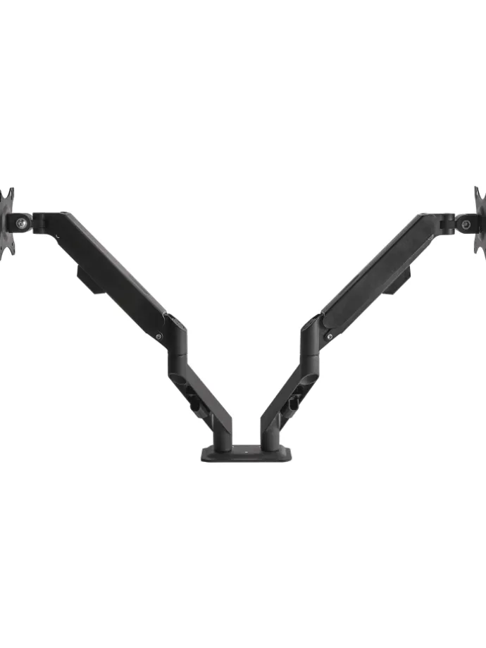 Tischhalterung mit verstellbarem Arm für Monitore bis 32″. Steigern Sie den Komfort bei der Arbeit mit diesem eleganten Doppel-Monitorarm, der Stil und Funktionalität perfekt vereint. Die Tischhalterung mit Klemme sorgt für Ordnung auf dem Schreibtisch und verbirgt geschickt Kabel für ein aufgeräumtes Erscheinungsbild. Die verstellbaren Arme ermöglichen es, das Display zu drehen, zu kippen oder sogar um 90° zu schwenken, sodass Sie stets den optimalen Blickwinkel für Arbeit oder Freizeit finden. Ein einfaches Upgrade, das Ihr Homeoffice professionell und zugleich komfortabel wirken lässt.