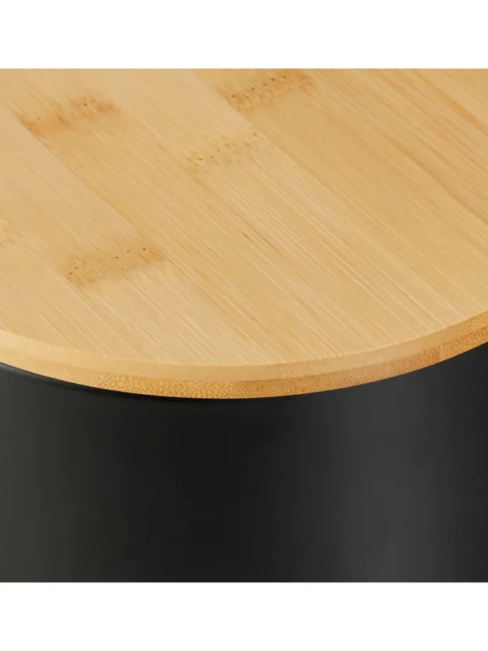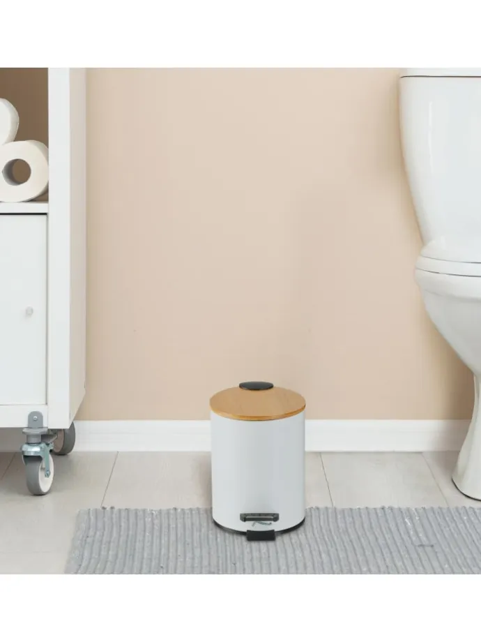 In dem runden Müllbehälter mit Bambusdeckel kannst Du hygienisch und komfortabel Deine Abfälle im Bad oder am Schminktisch entsorgen. Mit dem rutschfesten Trittpedal lässt sich der Badkübel freihändig öffnen. Das Schließen des Deckels gelingt dank Soft-Close-Funktion besonders sanft und leise. Der entnehmbare Kunststoffeimer sorgt für ein leichtes Entleeren des Abfalleimers. Zudem setzt der schicke Materialmix aus mattem Eisen und Bambus moderne Akzente in Deinem Badezimmer.
