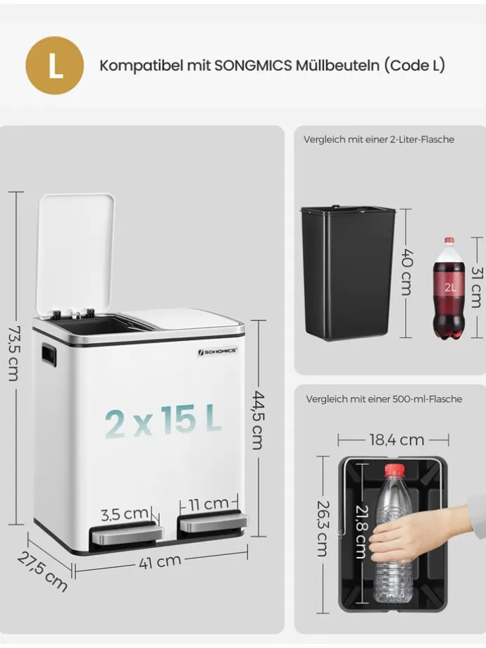 – hygienisches Öffnen und Schließen mit praktischem Pedal