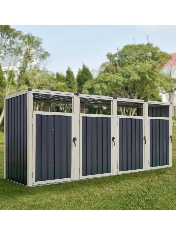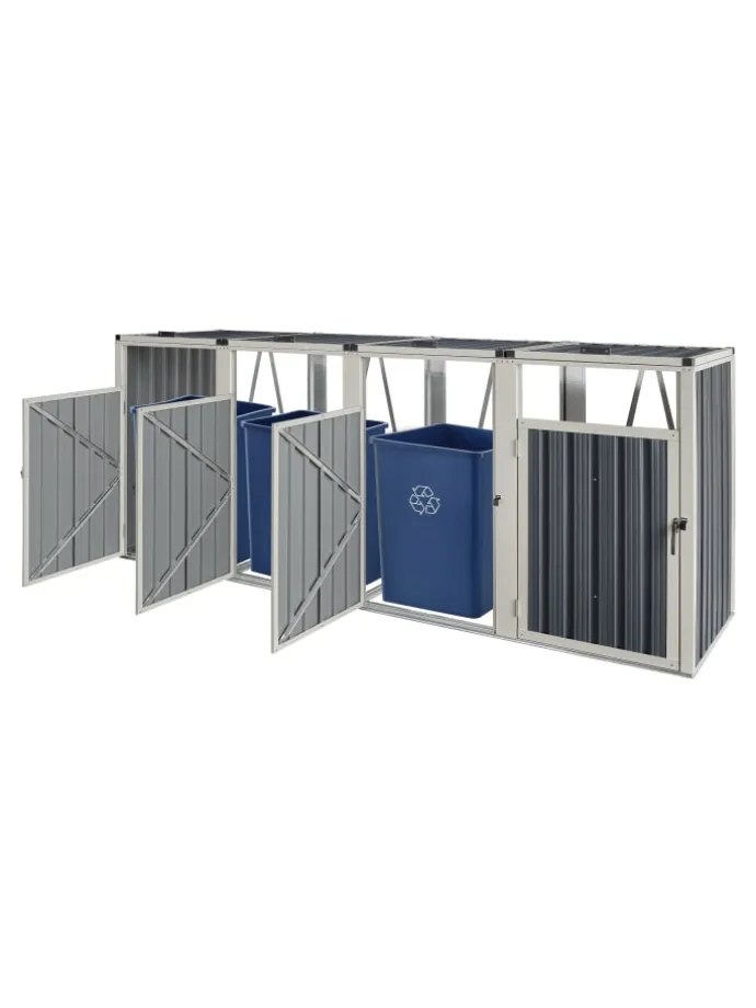 Die witterungsbeständige Mülltonnenverkleidung aus verzinktem Stahl eignet sich perfekt für Ihren Außenbereich. Durch die Türgriffe lassen sich die einzelnen Türen der Müllboxen schnell und einfach separat öffnen um die Mülltonnen zu entnehmen und zu entleeren. Darüber hinaus bietet die Verkleidung einen idealen Sichtschutz für Ihre Abfallbehälter.