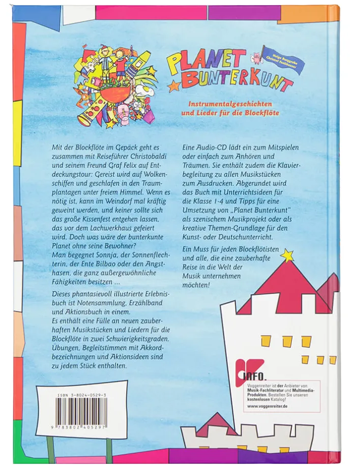 Gibt es etwas Spannenderes, als einen neuen Planeten zu erkunden? Mit der Blockflöte im Gepäck geht es zusammen mit Reiseführer Christobaldi und seinem Freund Graf Felix auf Entdeckungstour: Gereist wird auf Wolkenschiffen und geschlafen in den Traumplantagen unter freiem Himmel. Wenn es nötig ist, kann im Weindorf mal kräftig geweint werden, und keiner sollte sich das große Kissenfest entgehen lassen, das vor dem Lachwerkhaus gefeiert wird. Doch was wäre der bunterkunte Planet ohne seine Bewohner? Man begegnet Sonnja, der Sonnenflechterin, der Ente Bilbao oder den Angsthasen, die ganz außergewöhnliche Fähigkeiten besitzen…