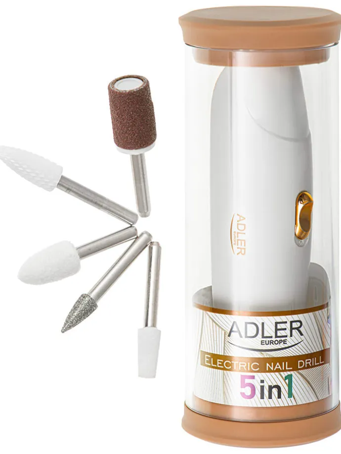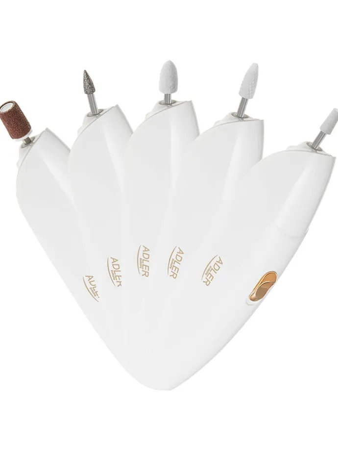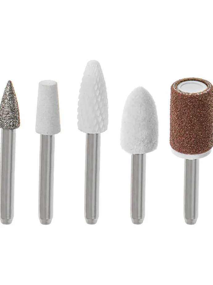 – 5 austauschbare Kopfaufsätze: Schleifkegel, Schleifband, Stein-Schleiffräser, Keramikfräser, Polierfräser