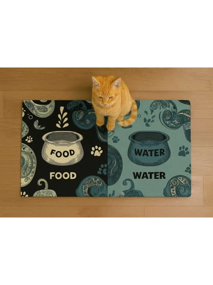 – schützt den Boden rund um die Futter- und Wassernäpfe