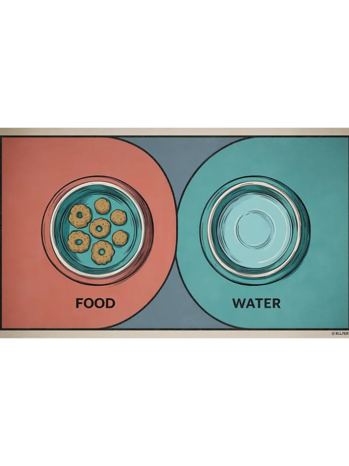 – schützt den Boden rund um die Futter- und Wassernäpfe
