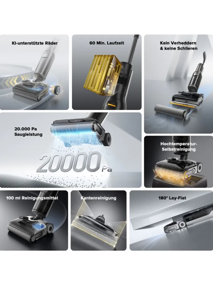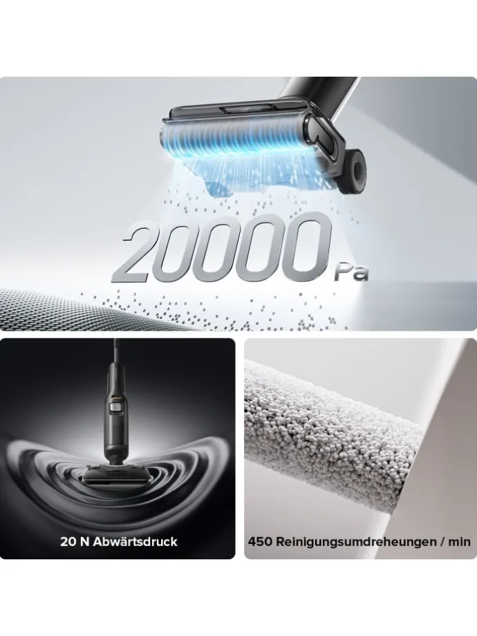 Mit 20.000 Pa Saugkraft und 450 U/min Reinigungsfrequenz entfernt der Roborock F25 ALT hartnäckigen Schmutz mühelos – für makellose Ergebnisse in kürzester Zeit.