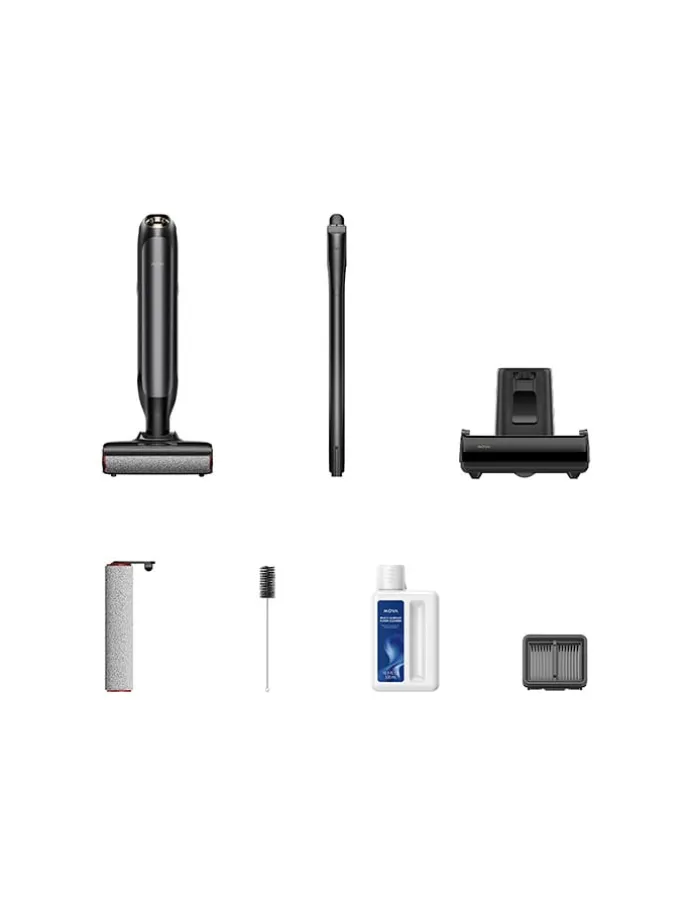 1x Hauptteil (Gerät), 1x Griff, 1x Ladestation / Basis, 1x Reinigungsbürste, 1x Reinigungslösung, 1x Ersatzrollenbürste, 1x Ersatzfilter