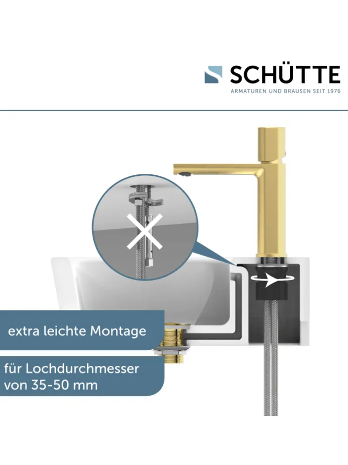 Abgerundet wird die Badarmatur durch ihre einfache Montage. Die mitgelieferte Zentralverschraubung ist praktisch, selbsterklärend und kann ohne Fachkenntnisse schnell umgesetzt werden.
