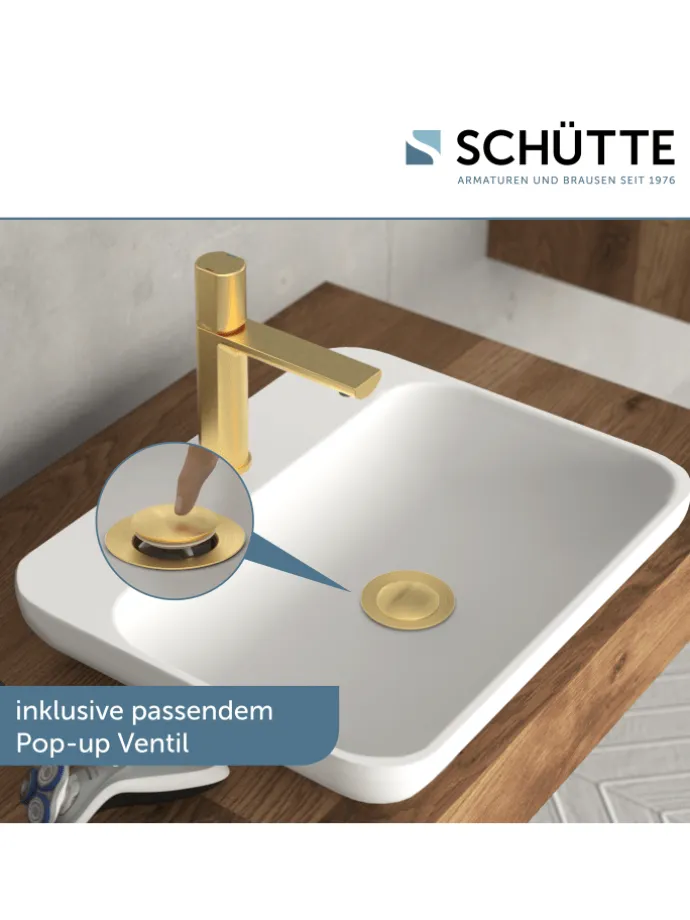 Der Wasserhahn Bad verfügt über eine Waschbecken Ablaufgarnitur mit Pop Up Ablaufventil. Bequem per Fingerdruck den Abflussstopfen öffnen und schließen. Passend zu allen Waschtisch-Siphons mit 11/4“ – Ø ca. 4 cm Anschluss.