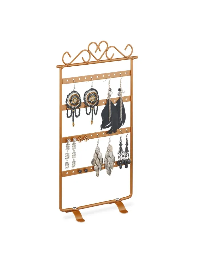 Mit diesem Ohrringständer hängt der passende Ohrschmuck für Dein Outfit jederzeit griffbereit. Der Schmuckhalter bietet auf 4 Etagen ausreichend Stauraum, um Deine Lieblingsstücke unterzubringen. Insgesamt verfügt der Schmuck-Organizer über 44 Steckplätze für Ohrstecker, Ohrringe oder lange Ohrhänger. Der Ohrringhalter überzeugt durch sein romantisches Design mit dekorativer Herzverzierung. So sorgt die Ohrringhalterung für einen Hingucker im Schlafzimmer, Bad oder auf dem Schminktisch.