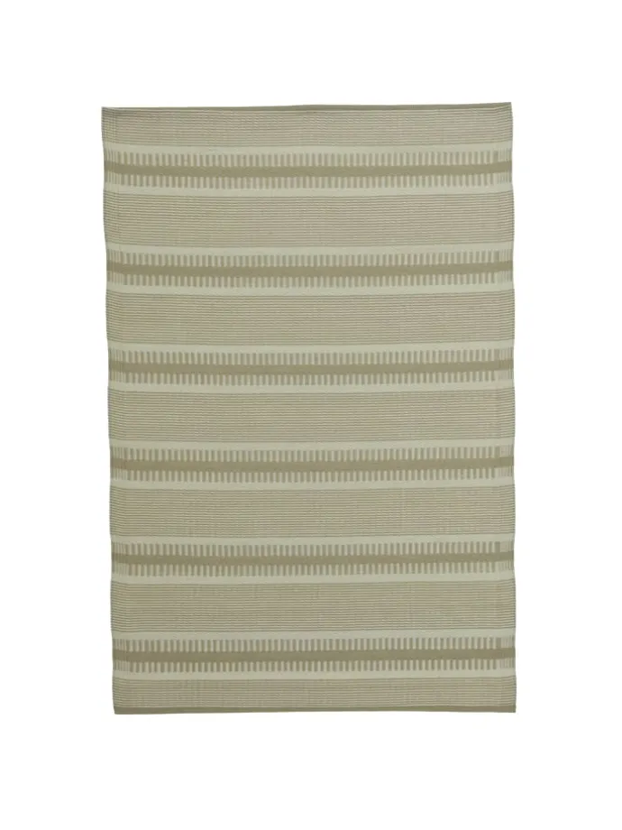 Das Material aus 100% Polypropylen überzeugt durch seine Langlebigkeit und seine Formbeständigkeit. Der beige gestreifte Teppich ist wasser- und schmutzabweisend. So kannst Du den Teppich jederzeit abfegen oder mit dem Gartenschlauch abspritzen. Der hohe UV Schutz schützt den Outdoor Teppich vor den Sonnenstrahlen.