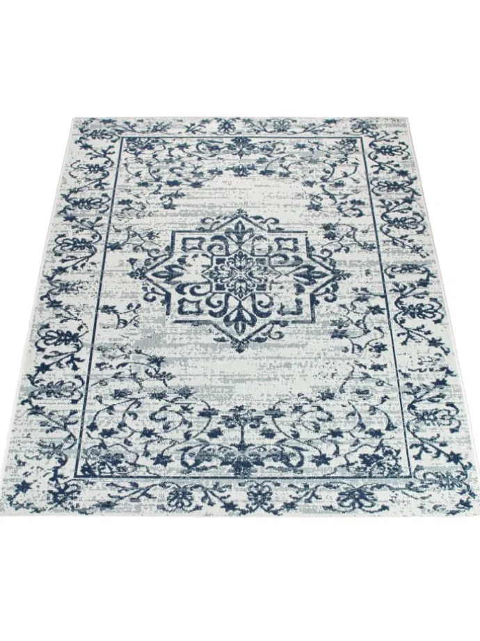 Outdoor Teppich rechteckig – Farben: Dunkelblau, Beige – Medaillon-Vintage
