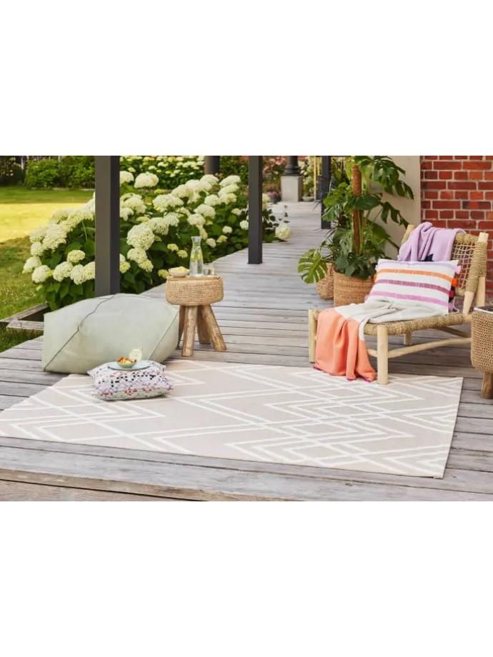 Der Outdoorteppich „Rave“ von Esprit zeichnet sich durch eine angenehme Haptik und ein modernes geometrisches Muster aus. Rave sieht nicht in Außenbereichen toll aus, sondern ist mit seinen harmonischen Farben auch die perfekte Ergänzung zu Einrichtungsgegenständen in modernen Innenräumen. Der maschinengewebte Teppich überzeugt dabei mit Design, Qualität und Unkompliziertheit. Rave ist ein echtes Lieblingsstück auf Balkon, Terrasse und im Garten und sorgt für wohnliches Flair, Wohlfühlambiente und viele unbeschwerte Momente. Alle, die nach einem vielseitigen Outdoorteppich suchen, sind bei Rave an der richtigen Adresse.