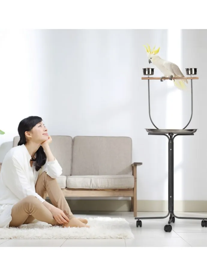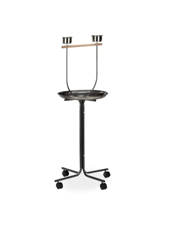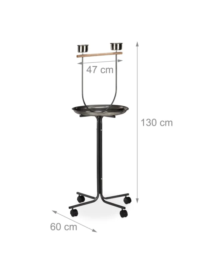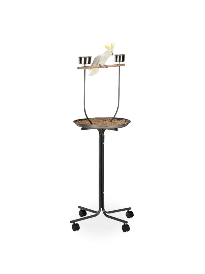 Für Wellensittiche, Nymphensittiche oder Kakadus ist das freie Fliegen sehr wichtig. Der Freisitz eignet sich perfekt für Aktivitäten außerhalb des Käfigs. Die Holzstange macht das Anfliegen leicht und punktet als Sitzgelegenheit. Die festgedrehten Näpfe laden zum Fressen oder Trinken ein. Dank der großen Auffangschale darunter hält sich die Verschmutzung Ihrer Räume sehr in Grenzen. Die Laufrollen erlauben es, den Vogelständer bequem dorthin zu schieben, wo er gerade gebraucht wird.