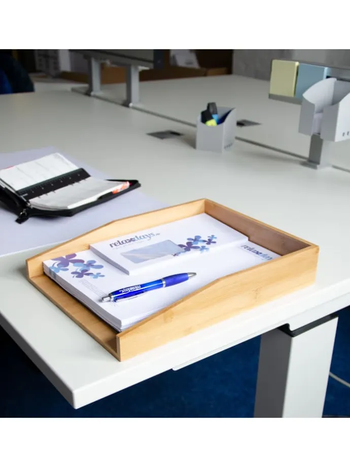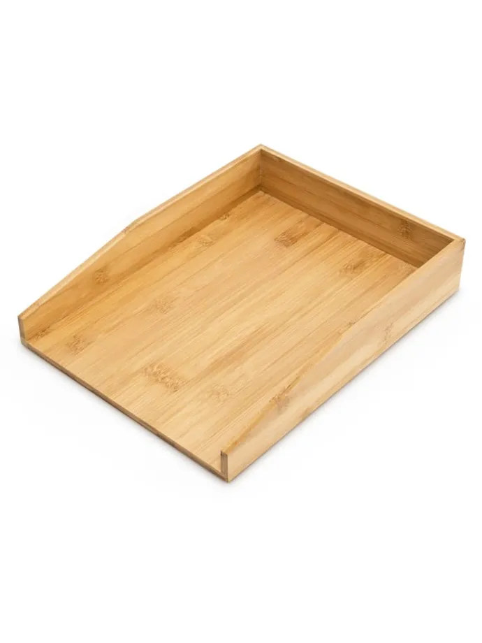 Die praktische Dokumentenablage aus Bambus ist ideal zur Aufbewahrung wichtiger Unterlagen, Briefe und Rechnungen. Das Ablagefach eignet sich für Papier im DIN A4 Format und kann bei Bedarf mit anderen Ablagen aufeinandergestapelt werden. Die tiefe Briefablage besteht aus nachhaltigem Bambus in Natur, welche auf jeden Schreibtisch passt. Bringe Ordnung in Deine Unterlagen.