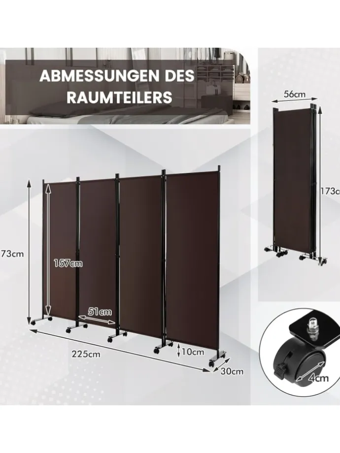 Suchen Sie nach einem Raumteiler, der sich leicht verschieben lässt? Schaut euch diesen tollen Sichtschutz mit 1 / 3 / 4 / 6 Paneelen an! Die vergrößerte Trennwand passt in die meisten Innenräume! Sie können sie in Ihr Wohnzimmer, Schlafzimmer, Büro usw. stellen.