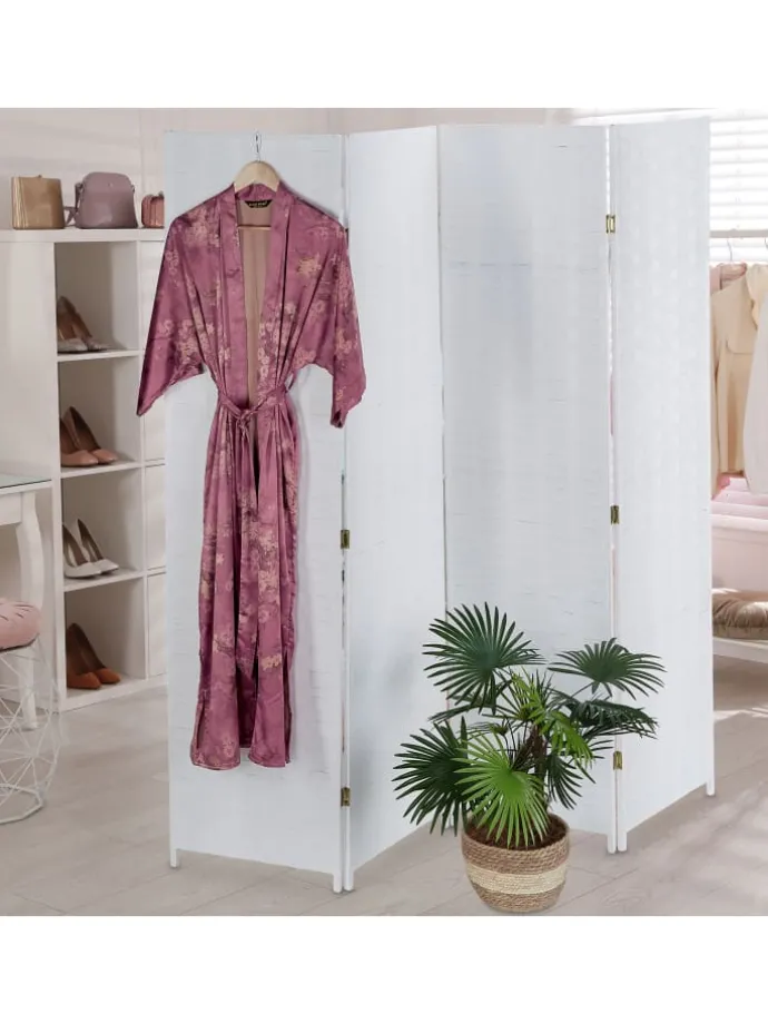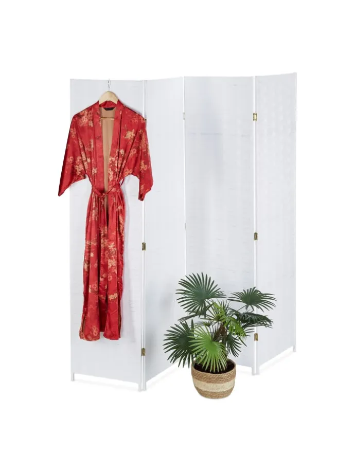 Mit der Abtrennwand unterteilst Du Deine Wohnung intelligent in verschiedene Bereiche. Schaffe gemütliche Rückzugsorte im Wohnzimmer, einen Umkleidebereich im Schlafzimmer oder nutze die Stellwand einfach als Dekoelement. Dank des edlen geflochtenen Designs ist die weiße Sichtschutzwand in jedem Raum ein toller Hingucker. Benötigst Du die 4-teilige Raumtrennwand nicht, kannst Du diese einfach zusammenfalten und platzsparend verstauen.