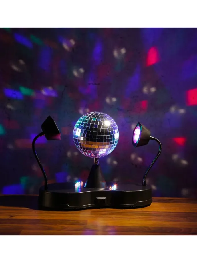Durch die Drehung der Discokugel werden unzählige bunte Punkte wurd den ganzen Raum, die Decke und den Boden gedreht. Da kommt gleich richtig Stimmung auf!