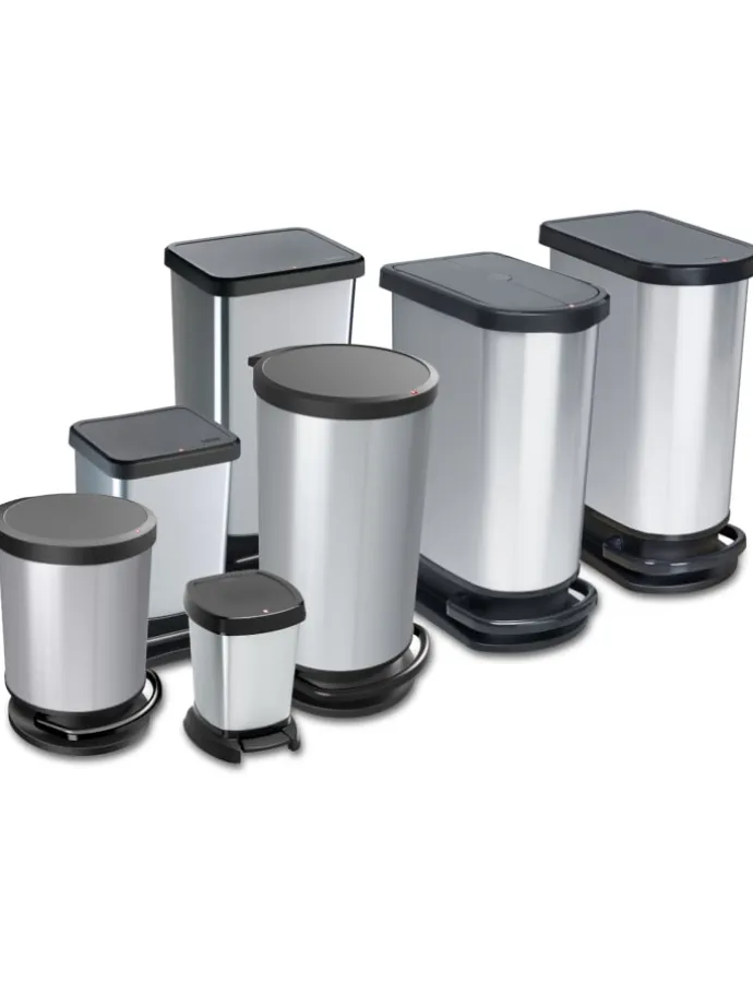 Die Abfalleimer der Linie „Paso“ verbinden ein stilvolles Müllentsorgungssystem mit absoluter Funktionalität. Mit Edelstahl-Optik, einer platzsparenden Form sowie robustem Material ist der Abfalleimer die nutzenorientierte Wahl für den Haushalt. Zudem ist der Mülleimer auch extrem benutzerfreundlich dank seines Tretmechanismus, der sich von drei Seiten bedienen lassen kann. Universell einsetzbar im Haushalt Die rechteckige Variante des Treteimers ist in zwei verschiedenen Grössen erhältlich und damit der perfekte Helfer in Werkstatt, Kinderzimmer, Büro, Küche, Badezimmer und mehr. Er ist einfach zu reinigen und dank des hochwertigen Kunststoff entstehen keine Fingerabdrücke, sowie Beulen und er rostet nicht.
