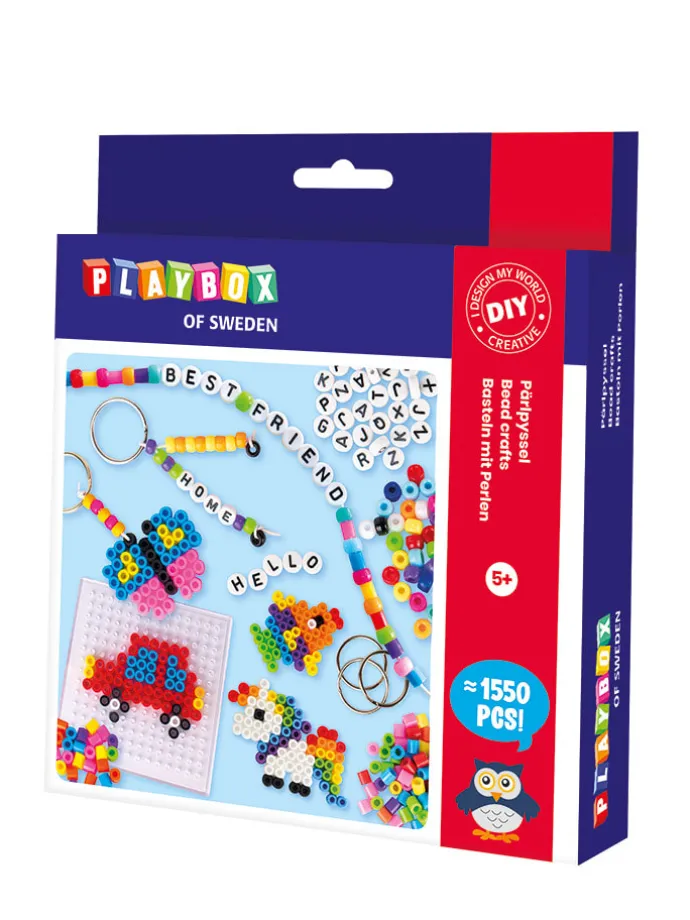– Inhalt: 1000 Bügelperlen, 1 Steckplatte, Bügelpapier, 400 Kongoperlen, 150 Buchstabenperlen, 1 elastische Schnur 5 m, 5 Schlüsselringe, 1 Anleitung