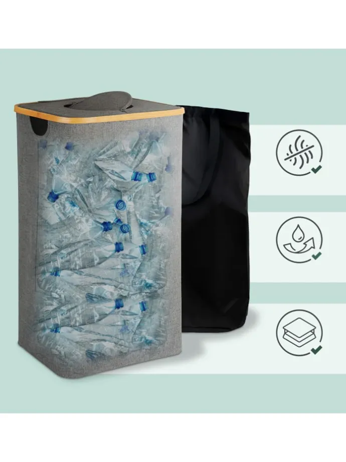 Noch immer Leergut in Tüten gestopft? Dann wird es Zeit für den Flaschensammler mit großem Fassungsvermögen. Die Flaschenbox aus Baumwolle mit Bambusakzenten macht kurzen Prozess mit Chaos. Der herausnehmbare Beutel mit Griffen ist praktisch. Der Deckel des Pfandsammlers macht das Einwerfen einfach und hält Gerüche da, wo sie hingehören. Egal ob in Küche, im Keller oder im Flur – wichtig ist nur, dass Du endlich Ordnung schaffst. Keine Ausreden mehr. Wer es ordentlich mag, greift jetzt zu.