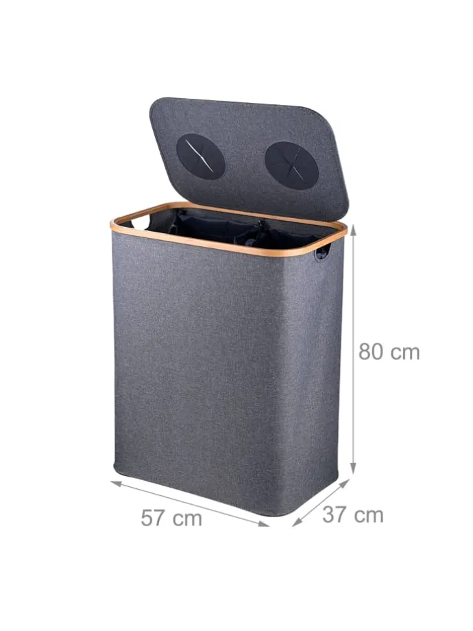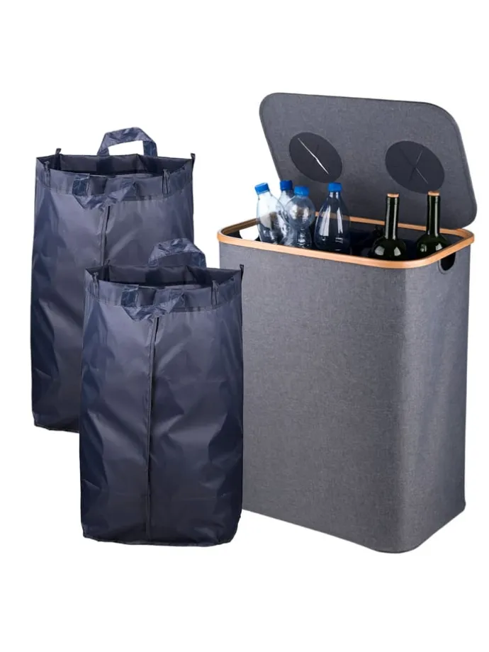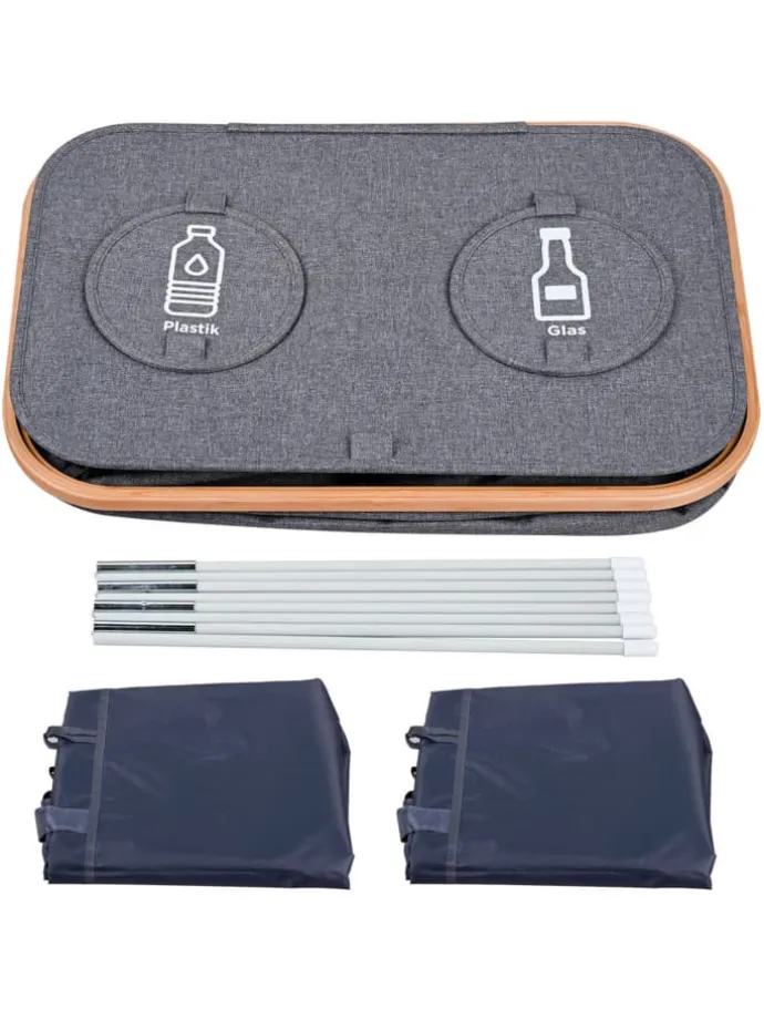 Für ein sauberes Trennen von Glas- und Plastikflaschen sorgt diese Flaschenbox mit großem Volumen verteilt auf zwei Fächern. Die entnehmbaren Innensäcke aus robustem Oxford-Material sind pflegeleicht und lassen sich dank Griffen leicht transportieren. Der Leergutbehälter hat 2 Öffnungen zum einfachen Einwerfen. Die Abdeckungen beugen Gerüchen vor. Egal ob in Küche, im Keller oder im Flur, mit dem Pfandflaschen-Sammelbehälter wird Recycling zum Kinderspiel.
