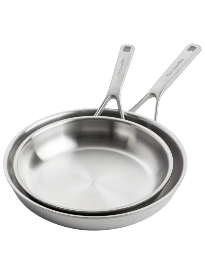 Die Multiply Stainless Steel-Kollektion von KitchenAid steht für Stil und langlebige Leistung – mit einer edlen, gebürsteten Oberfläche. Ein Aluminiumkern sorgt für eine gleichmäßige und konstante Wärmeverteilung beim Kochen. Innovative Details ermöglichen perfekte Kochergebnisse: