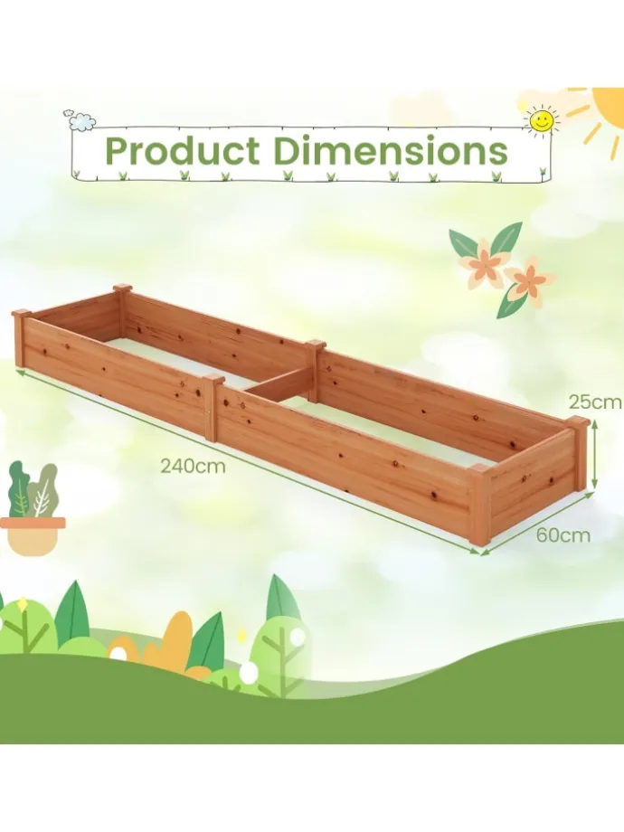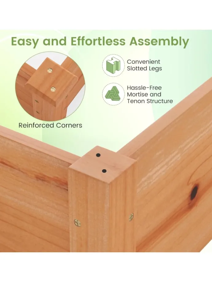Dieses Outdoor-Hochbeet ist aus naturbelassenem Tannenholz gefertigt, das chemikalienfrei und sicher in der Anwendung ist. Dank der Zapfen- und Schlitzkonstruktion lässt sich die Montage einfach und schnell durchführen, was Zeit und Mühe spart. Mit den beigefügten Schrauben ist dieser Pflanzkasten stabiler und stabiler. Die große Kapazität ermöglicht es Ihnen, mehr Gemüse, Blumen, Kräuter oder Früchte zu pflanzen. Durch den offenen Boden können die Wurzeln Ihrer Pflanzen unter guter Drainage frei wachsen. Dieses natürliche Holzgartenbeet wird lange halten und einen schönen und organisierten Garten schaffen. Es ist eine ideale Ergänzung zu verschiedenen Außenbereichen wie Hinterhof, Garten, Rasen, Terrasse usw.