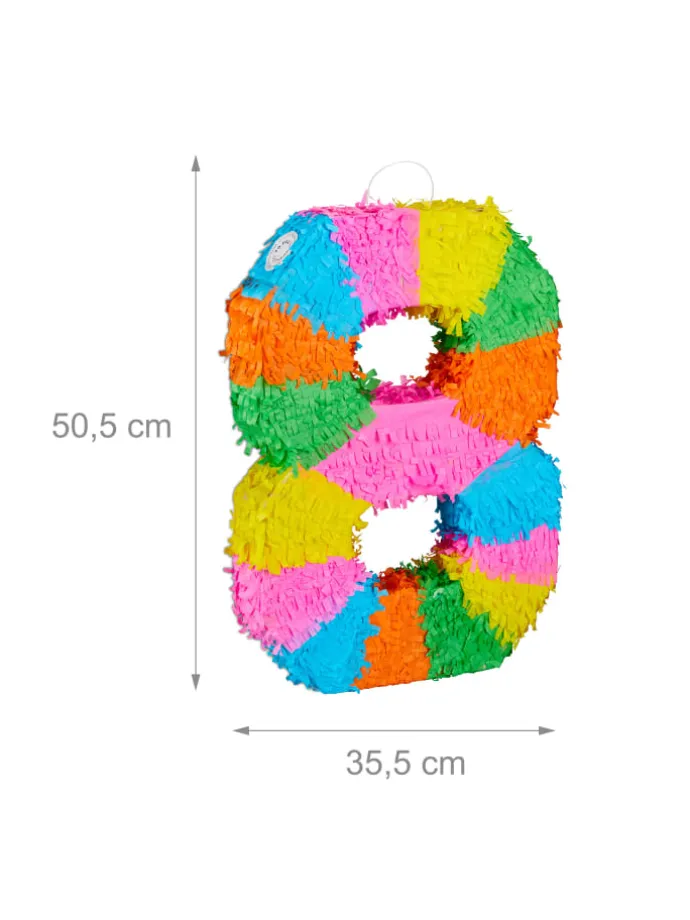 Das vor allem in Mexiko beliebte Partyspiel ist auch ideal für Einschulungen, Babypartys oder Junggesellenabschiede. Mit den Ziffern von 0 bis 9 kann jede beliebige Zahl zusammengestellt werden. So ist die Pinata auch für runde Geburtstage wie dem 30. oder 50. ideal. Als lustige Partydeko sorgt die Geburtstagspinata für einen garantierten Blickfang.