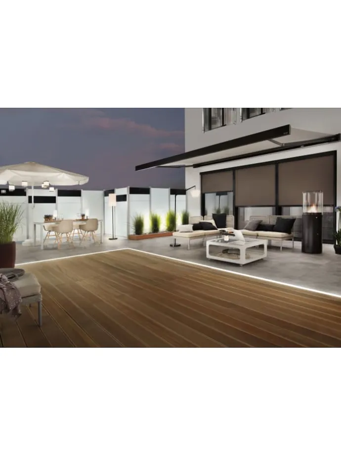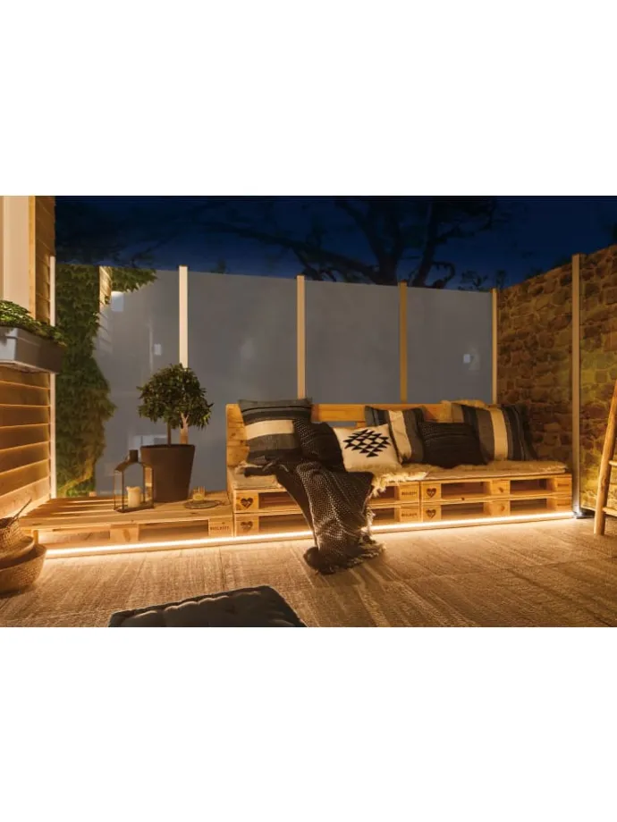 Der 2 meterlange Plug & Shine Smooth Strip mit 3000K ist absolut wetterbeständig und lässt sich direkt an das Ende des 24V-Systems anschließen. Steuerbar per App, Sprache oder Fernbedienung spendet er homogenes Licht. Es entsteht eine flexibel zu verlegende Lichtlinie, ohne sichtbare Lichtpunkte. Der Strip eignet sich daher besonders zur direkten Beleuchtung am Wegesrand, im Beet oder an Kanten. Zur optimalen Befestigung empfehlen wir die entsprechenden Montageclips oder das Aluminiumprofil. Zu beachten ist, dass der Strip nicht begeh- oder befahrbar ist und er nicht gekürzt werden kann. Beim Verlegen ist ein Radius von 80mm möglich – 90° Winkel können nicht realisiert werden.