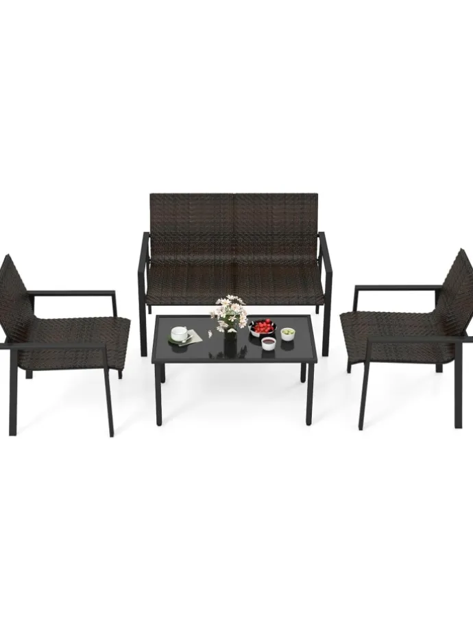 Dank der besseren maschinengewebten Qualität zeichnen sich die Rattanstühle durch eine raffinierte Optik aus, die nicht verblasst. Gepaart mit ergonomischem Design verspricht jeder Sitz Entspannung und entlastet den Rücken. Der starke Metallrahmen sorgt für Langlebigkeit, während verstellbare Fußpolster für zusätzliche Stabilität sorgen. Darüber hinaus bietet der geräumige Kaffeetisch mit einer eleganten Tischplatte aus gehärtetem Glas mehr Komfort beim Holen von Speisen oder Getränken. Verwandeln Sie Ihre Terrasse mit diesem exquisiten Möbelset in eine Oase der Gemütlichkeit.