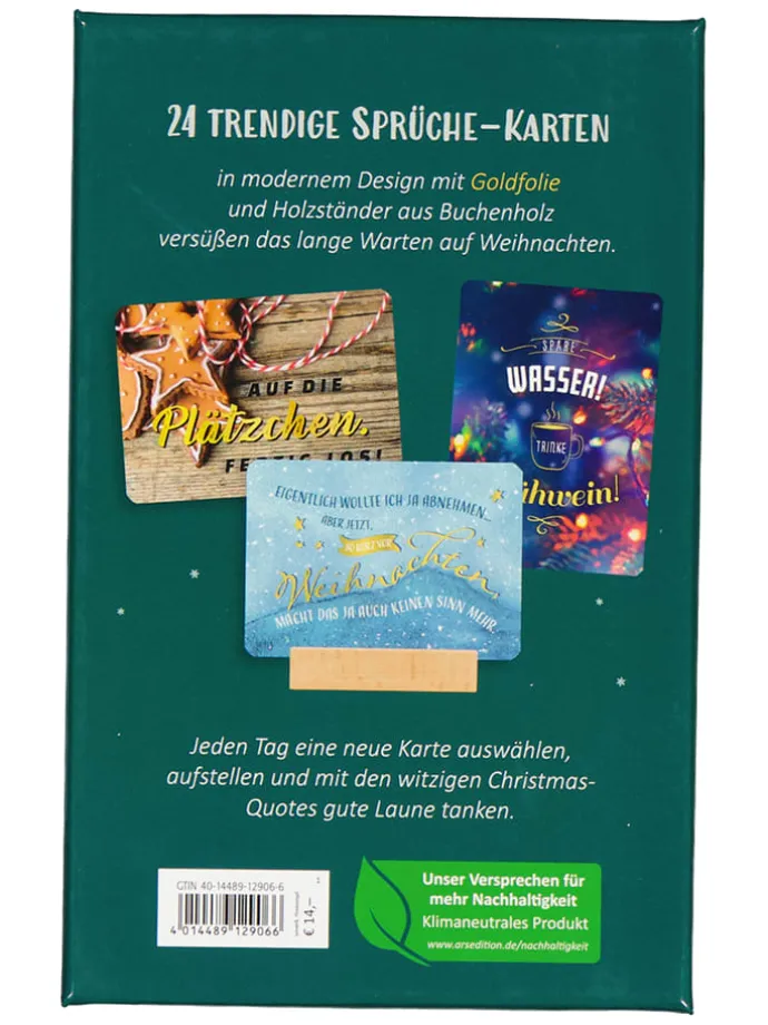 – Inhalt: 1 Adventskalender mit 24 Postkarten, 1 Holzständer