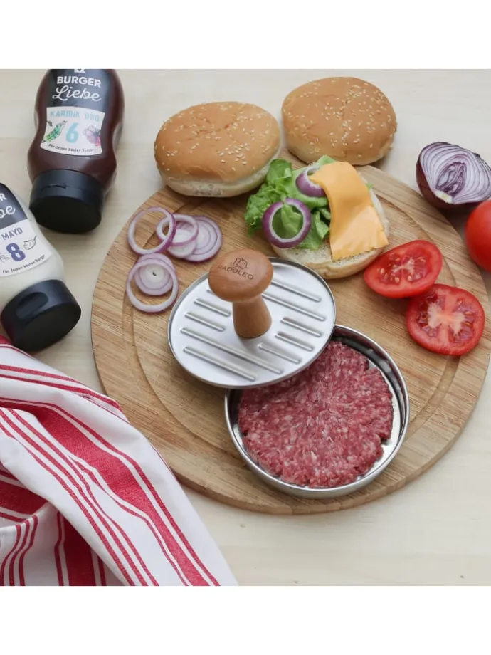 Damit die Pattys leicht aus der Presse rutschen empfehlen wir, die Presse leicht mit Öl einzureiben.