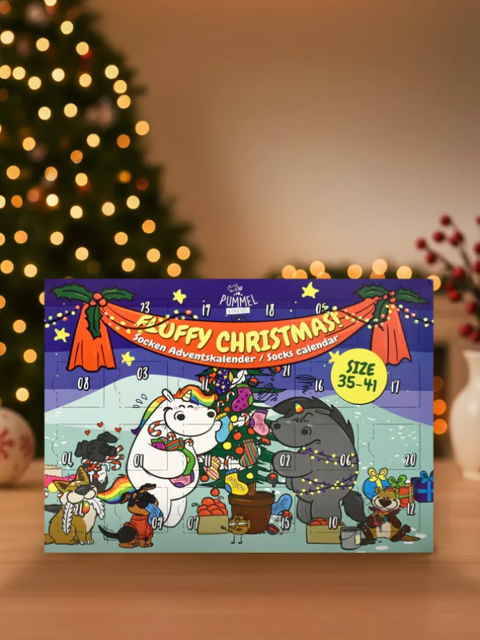 Erlebe die Vorfreude auf Weihnachten mit dem Pummel & Friends Socken Adventskalender für Damen in der Größe 35-41. Dieser einzigartige Adventskalender ist das perfekte Geschenk für alle Pummeleinhorn-Fans und bringt jeden Tag eine neue Überraschung in die Vorweihnachtszeit. Hinter den 24 liebevoll gestalteten Türchen verbirgt sich jeweils eine hochwertige Socke, die mit einem Pummeleinhorn, Grummeleinhorn, Zebrasus usw. Motiv verziert ist. Diese Socken sind nicht nur stilvoll, sondern auch kuschelig warm – ideal für die kalten Wintertage.
